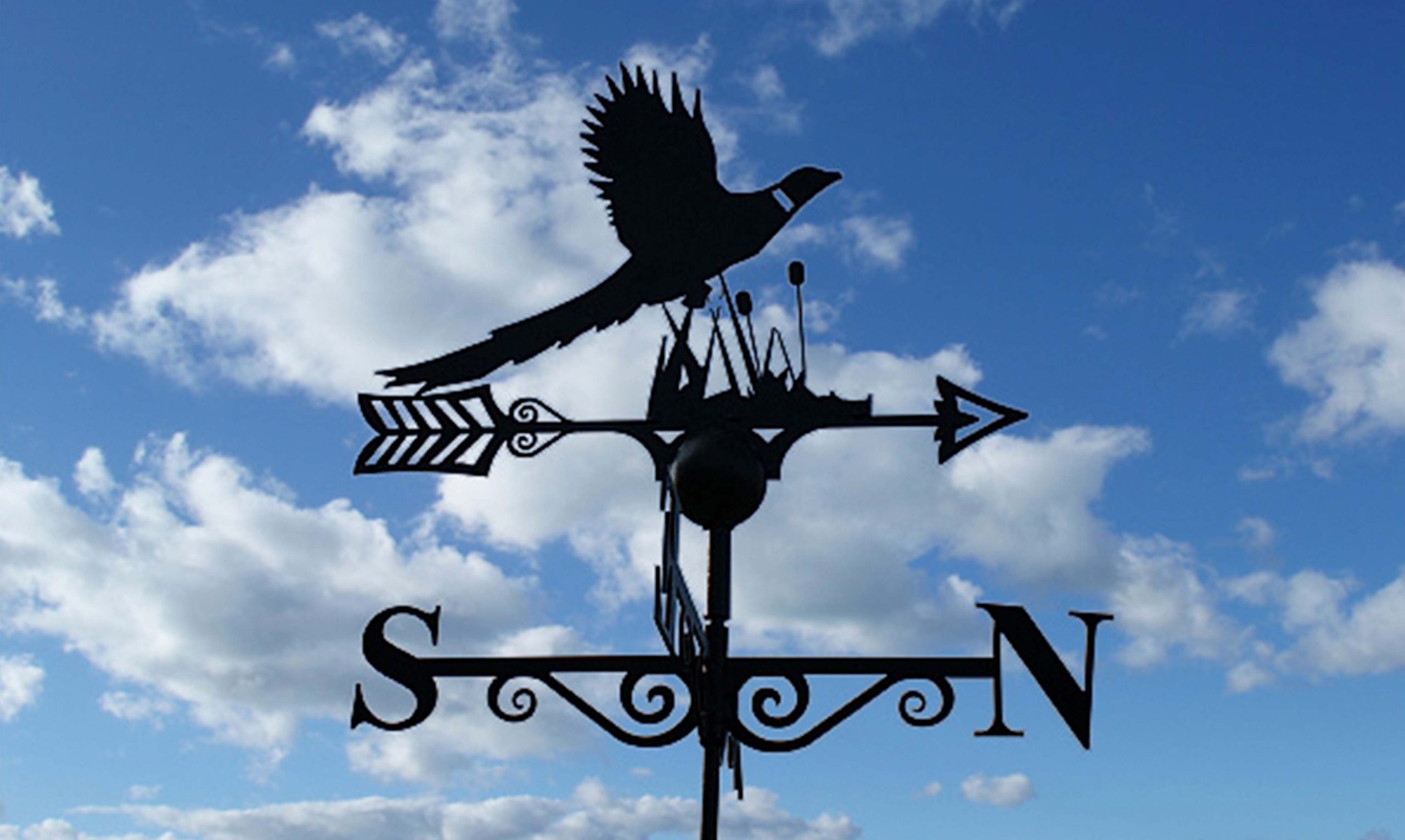 A weather vane, often referred to as a weathercock due to the traditional cockerel design that featured on them is a device usually mounted on the chimney top of traditional British houses. The function of them has remained only partly useful in determining the direction of the wind and for most, they are used as decorative pieces atop of roof buildings, farmhouses or ornate structures.